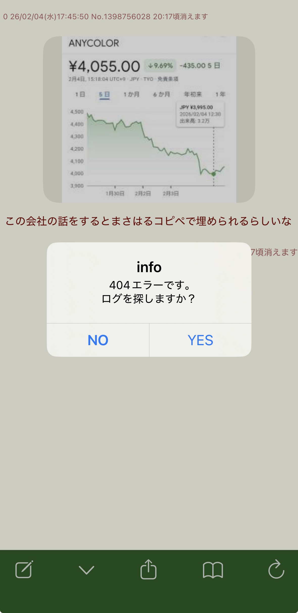 | … | 2226/02/04(水)18:11:38No.1398762594そうだねx6こうやってカバーの株価で粘着してたのをなかったことにしたい感じ? |
