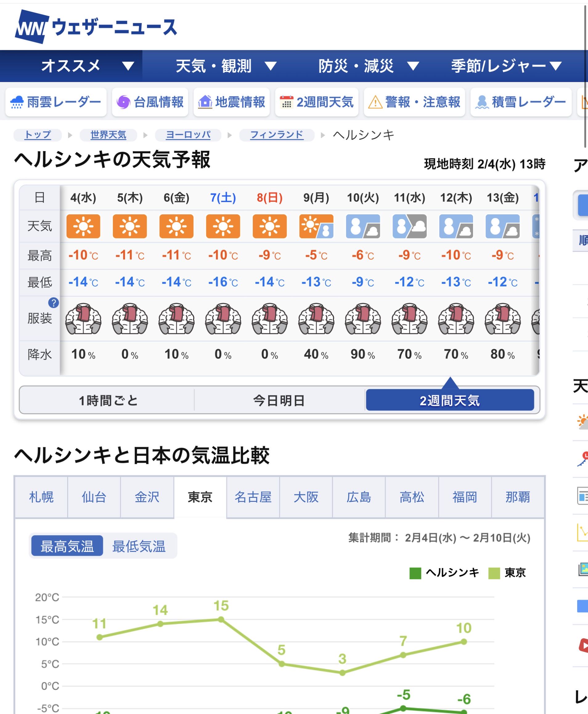 | … | 3726/02/04(水)20:44:58No.1398812472+>今日のヘルシンキの最高気温は10度すお |