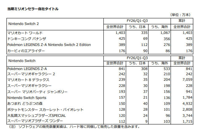 | … | 28026/02/04(水)20:37:00No.1398809643+Q2までは通期のソフト目標販売本数には同梱版入ってないって書いてあったのに |
