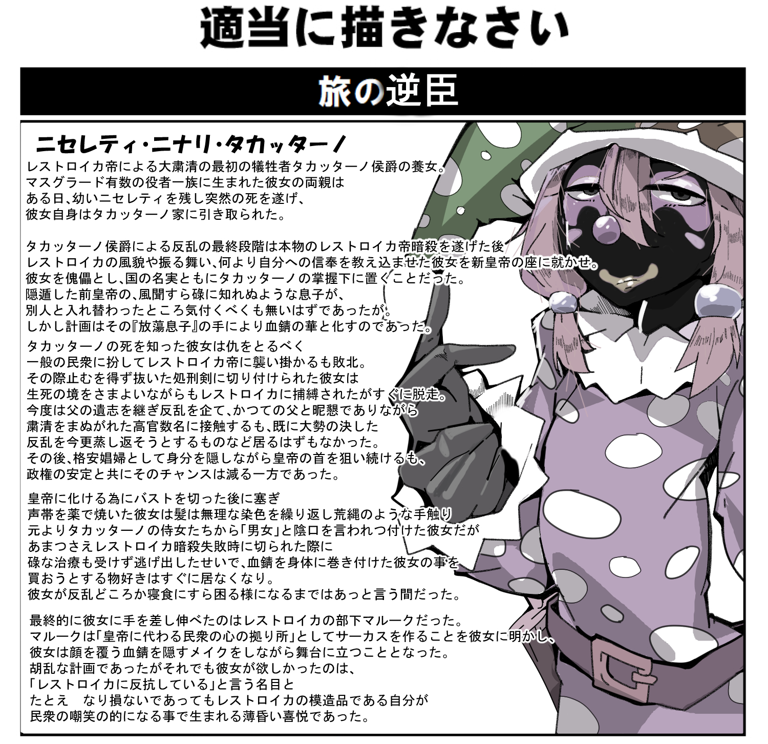 | … | 17226/02/05(木)00:03:17No.1398883958そうだねx1>長文で性癖を詰め込んだキャラを書いたまでは良かったけど後々になって「このキャラ扱いづらいな…」ってなった俺みたいなのも居る |