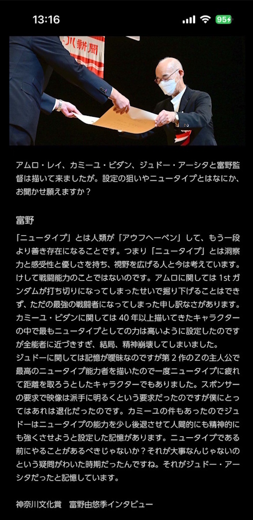 | … | 1926/02/04(水)23:39:03No.1398876823そうだねx1富野はニュータイプは洞察力と優しさを繋げていける人と |