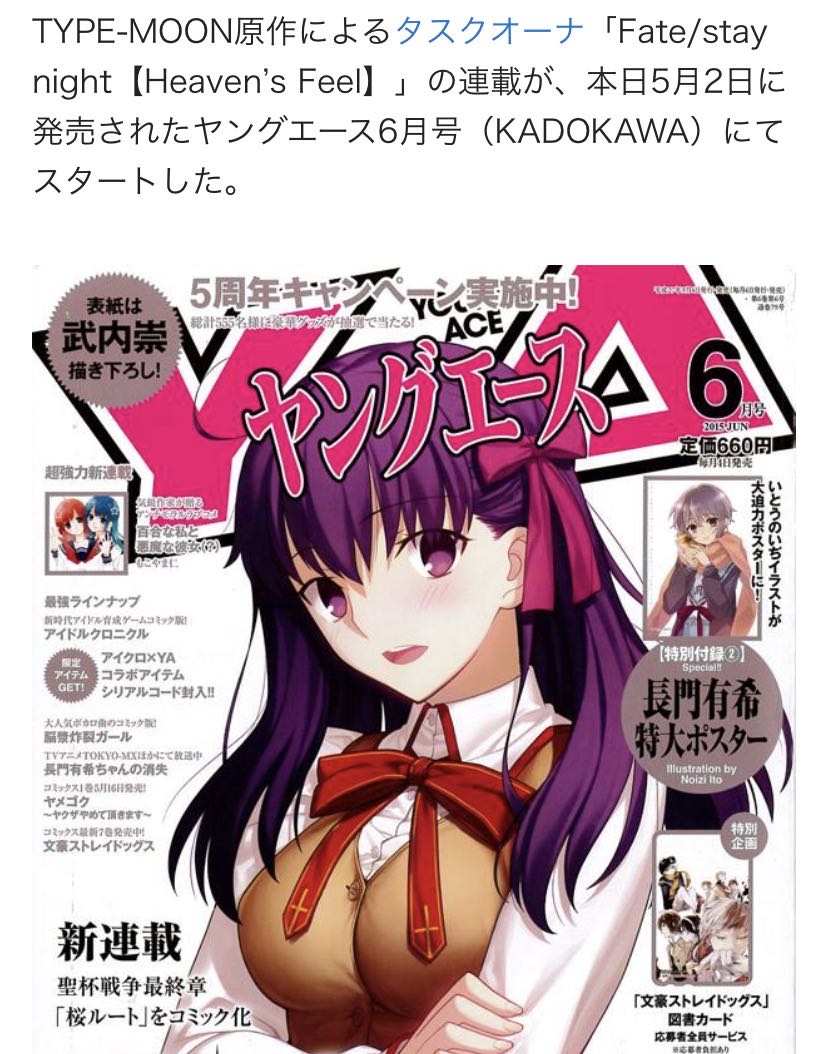 | … | 16426/02/05(木)13:23:34No.1398985349+HFコミカライズが2015年5月開始 |
