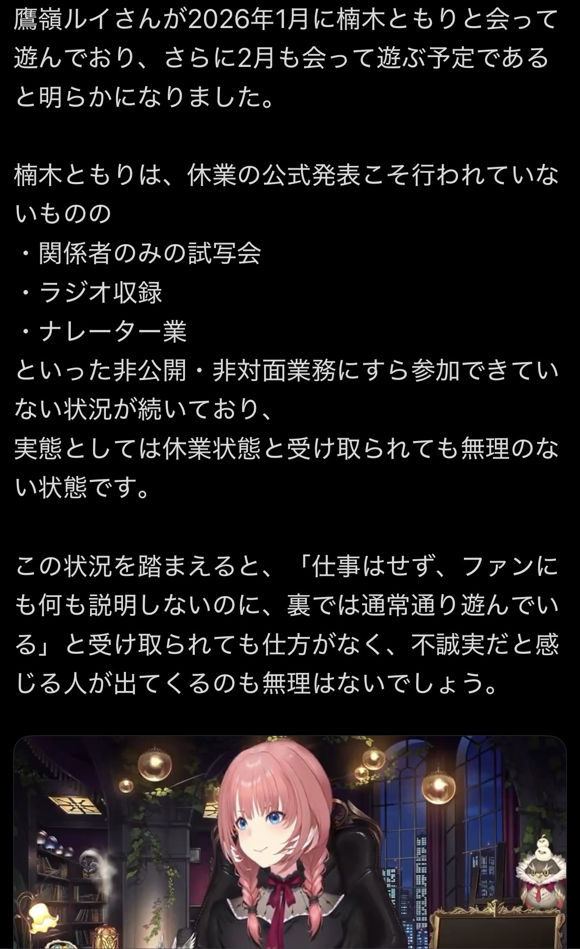 鷹峯ルイさん、状況知らんで何でもかんでもぺちゃくちゃ喋ってるか炎上楽しんでるかの2択だろと言われてしまう…このスレは古いので、もうすぐ消えます。
