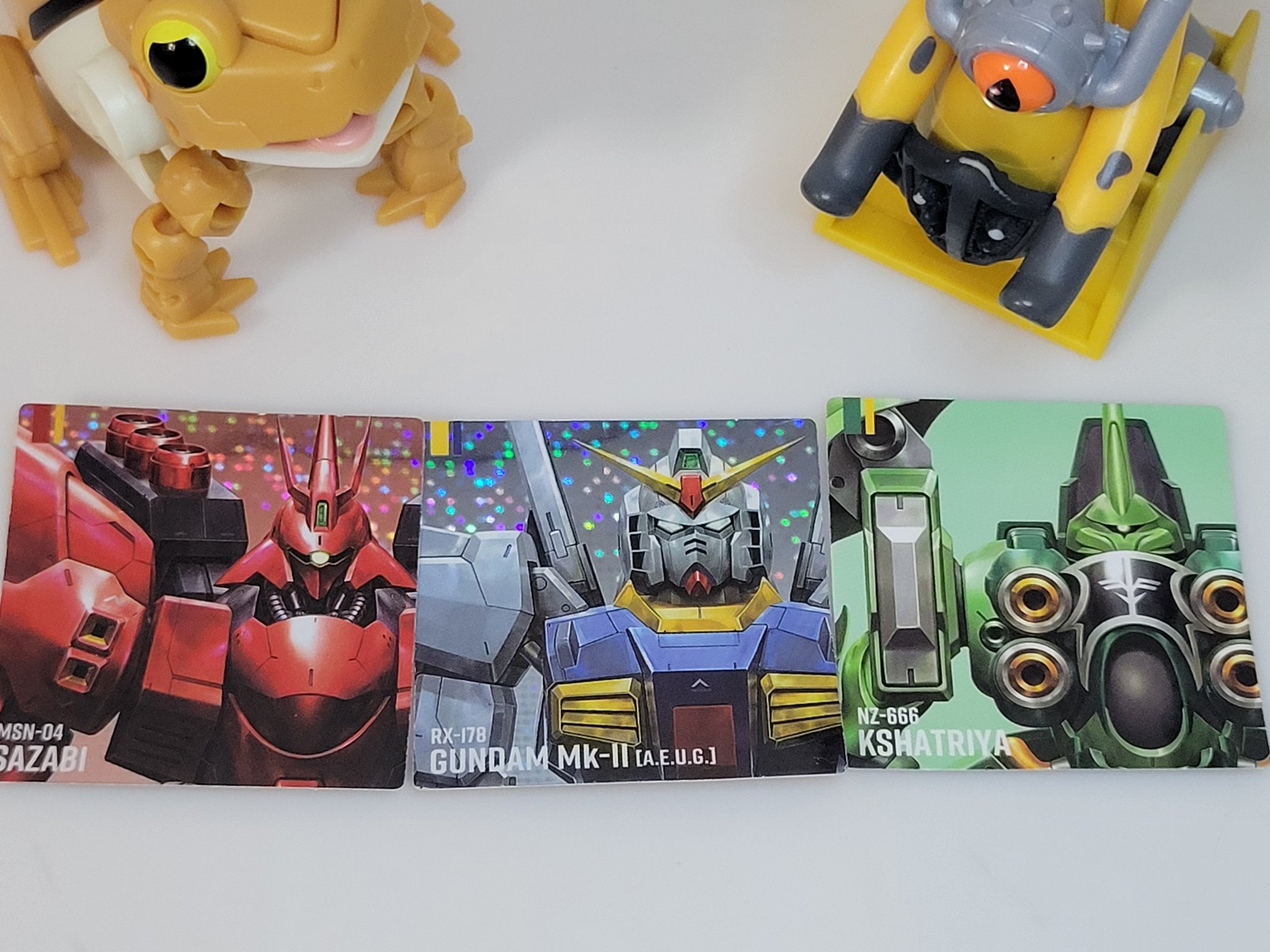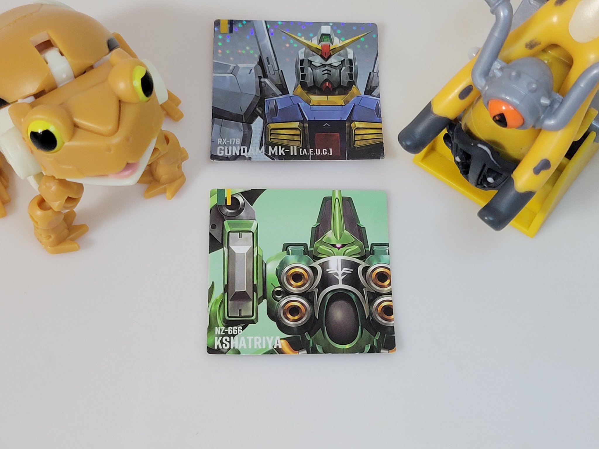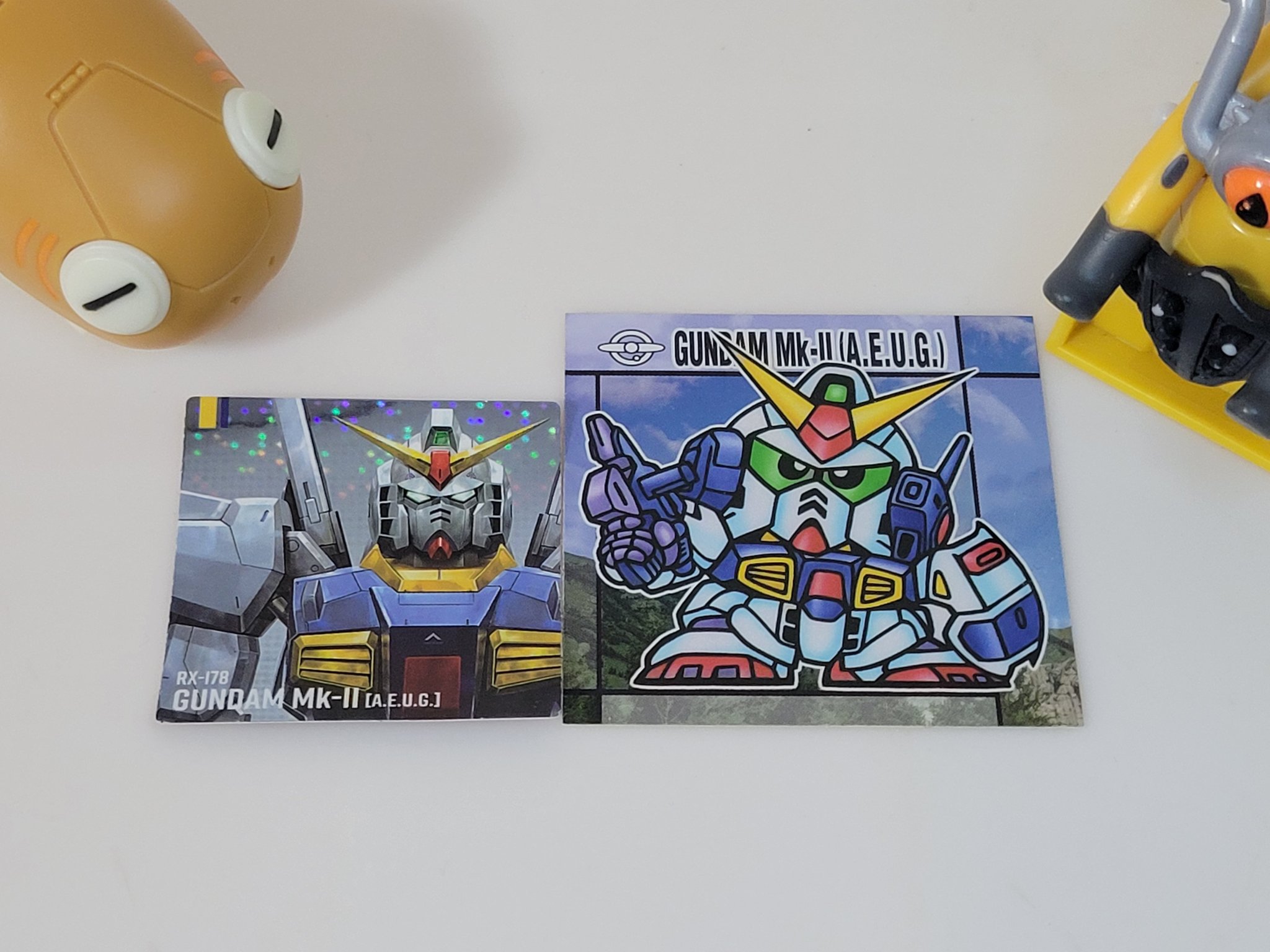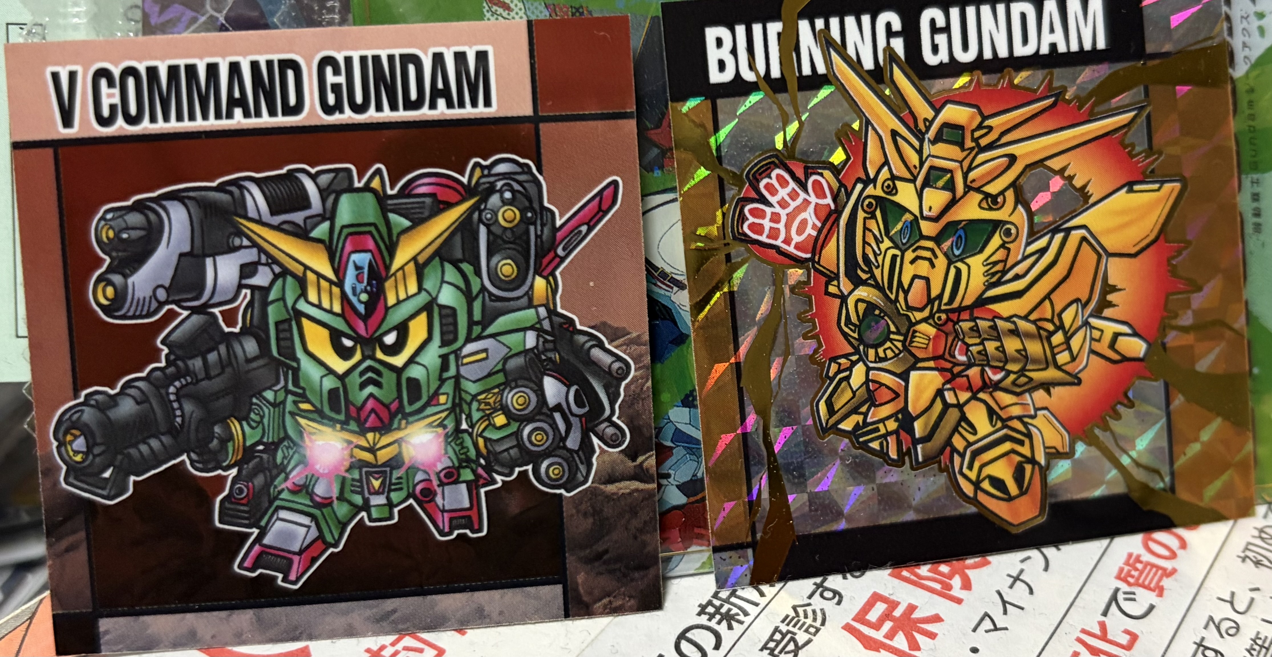 | … | 5226/02/05(木)22:35:54No.1399135593+>せっかくなので元祖SDガンダムスナックのシールと並べてみたぞ >fu6259107.jpg 思ったより小さいなぁ |