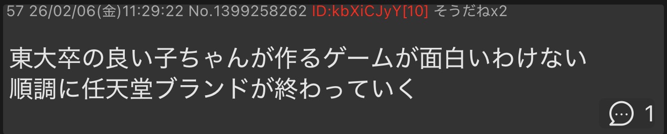 | … | 8626/02/06(金)12:54:03No.1399284928そうだねx3Switch2が売れてるのが全てでは? |