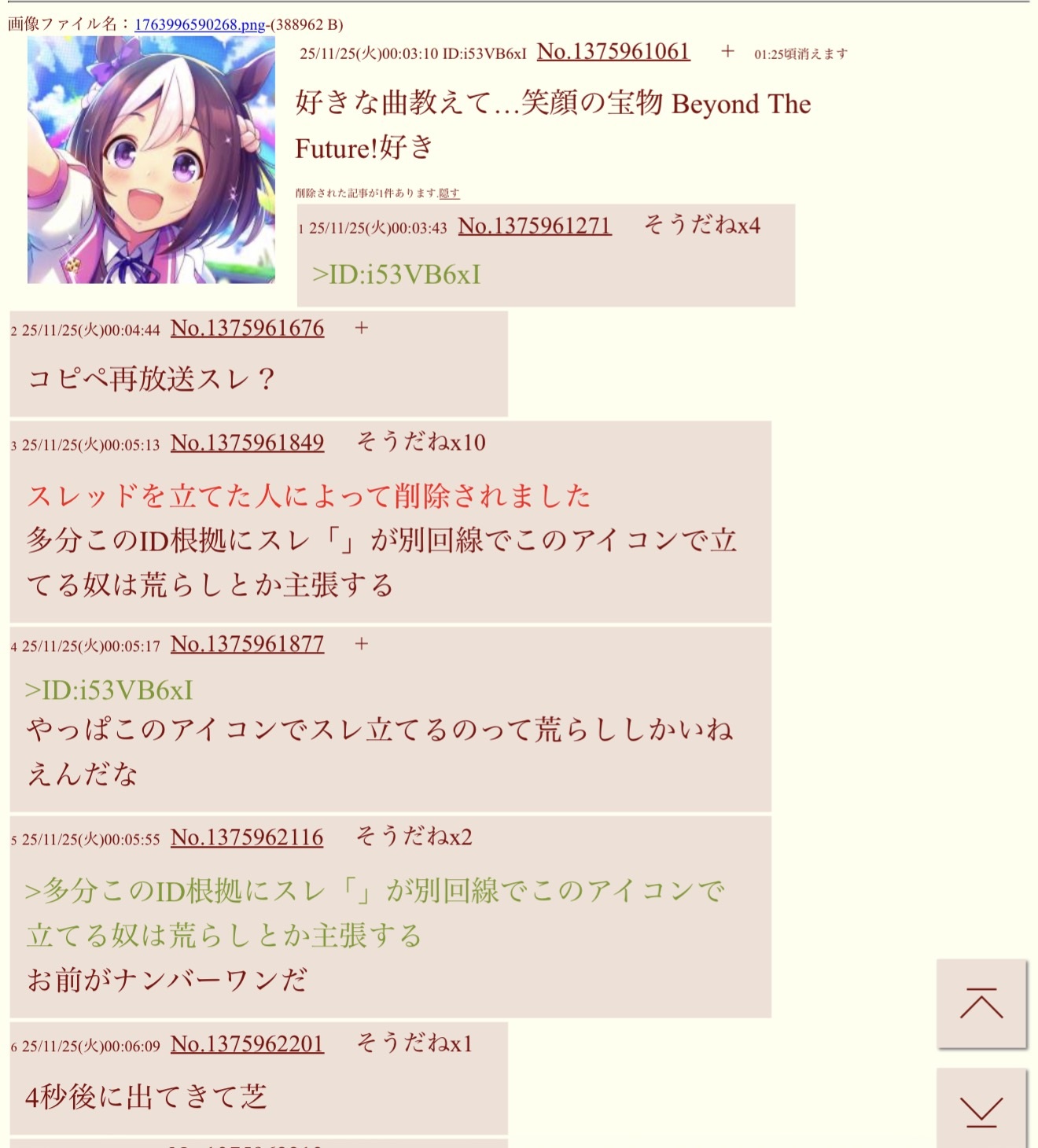 | … | 5726/02/06(金)17:35:31No.1399346252+上位層だとアイテイオーのほうがメインじゃね |