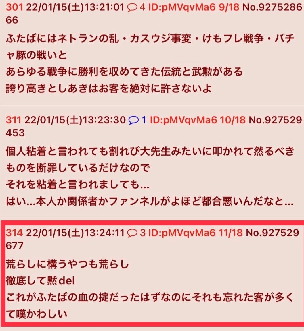 | … | 1126/02/06(金)20:14:10No.1399395229+元の荒らし自体は存在してるのに蚊帳の外にしてるのが頭悪いやつなりの逃げなんだな |