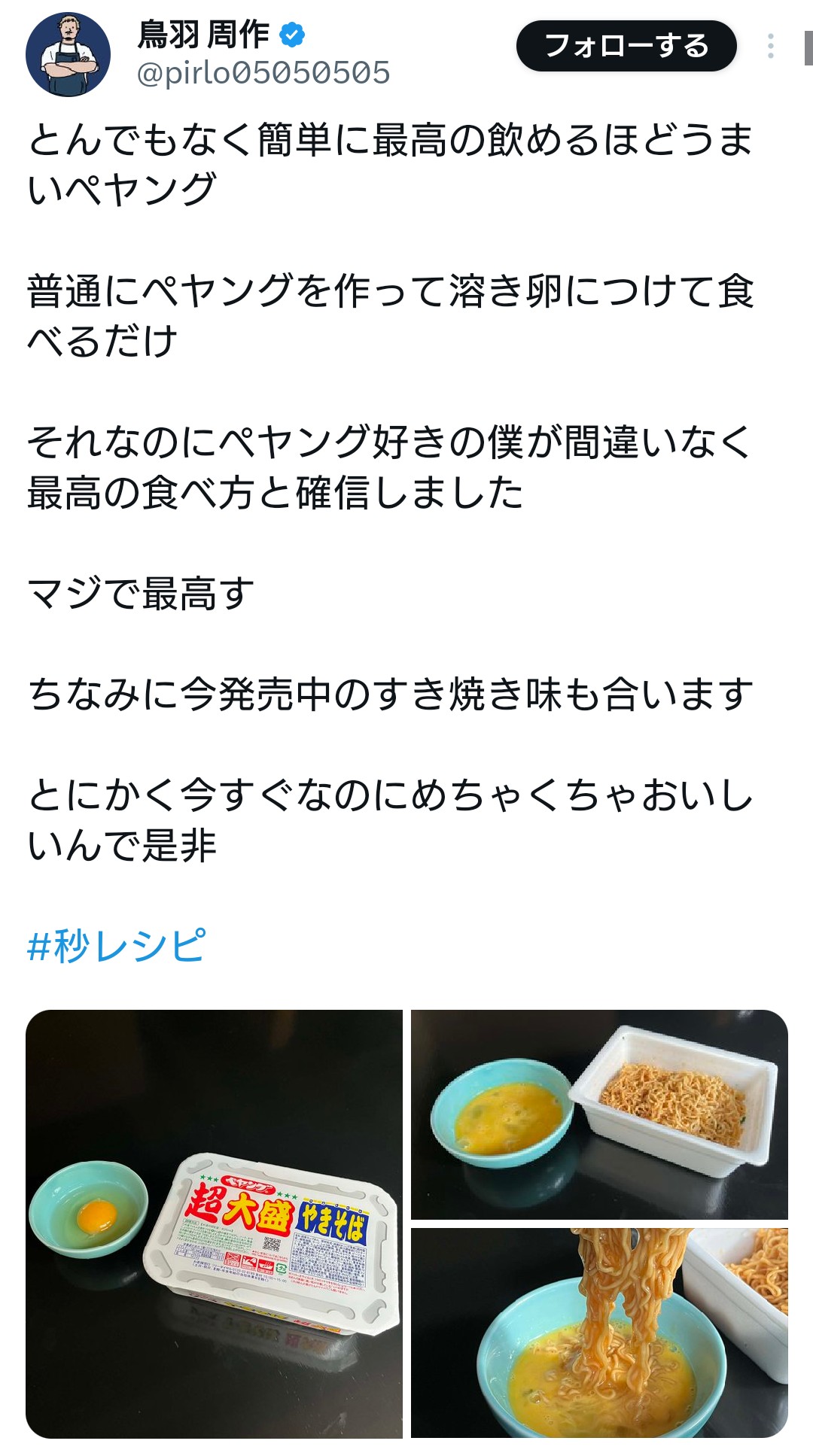 | … | 826/02/06(金)22:19:59No.1399444131そうだねx2焼きそばに生卵ぶっかけるのはやったけど浸けるのは試したことなかった |