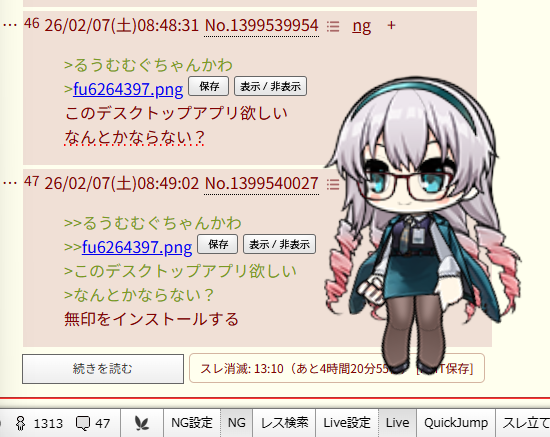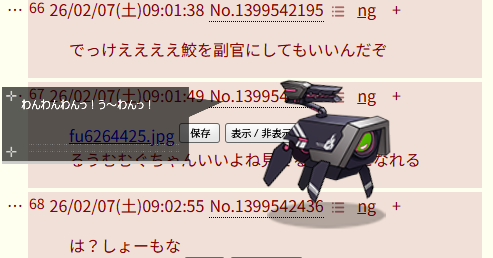| … | 5226/02/07(土)08:56:41No.1399541302+デスクトップマスコット…? |