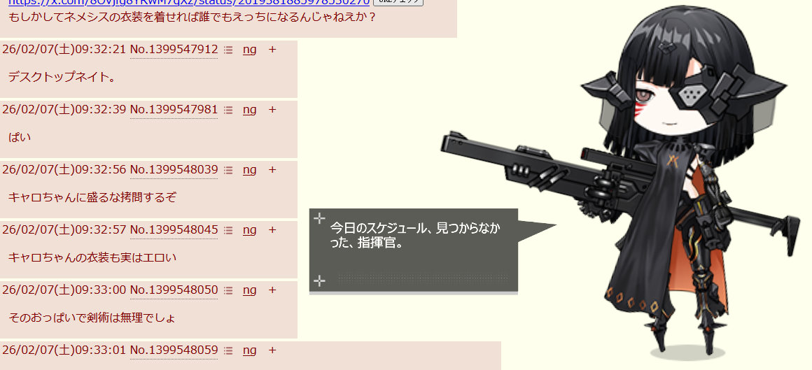 | … | 16126/02/07(土)09:41:37No.1399549700+おぼこいネメシスになんちゃらかんちゃら |