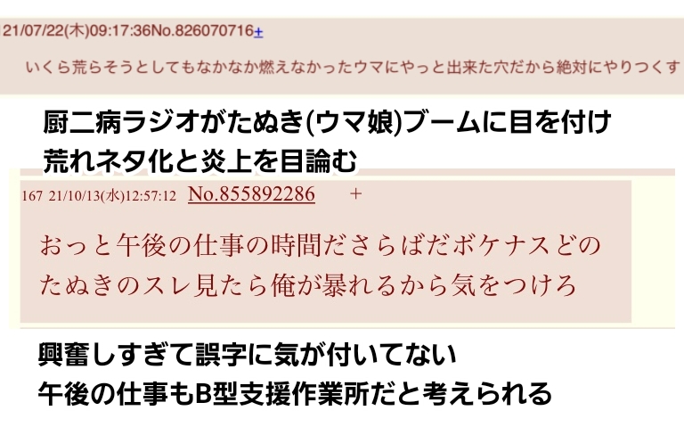 | … | 3526/02/07(土)18:12:13No.1399681917+>厨二病ラジオは俺の事を40代醜女や17人衆に見えてるみたいだけどそっちは馬鹿にしないの? |