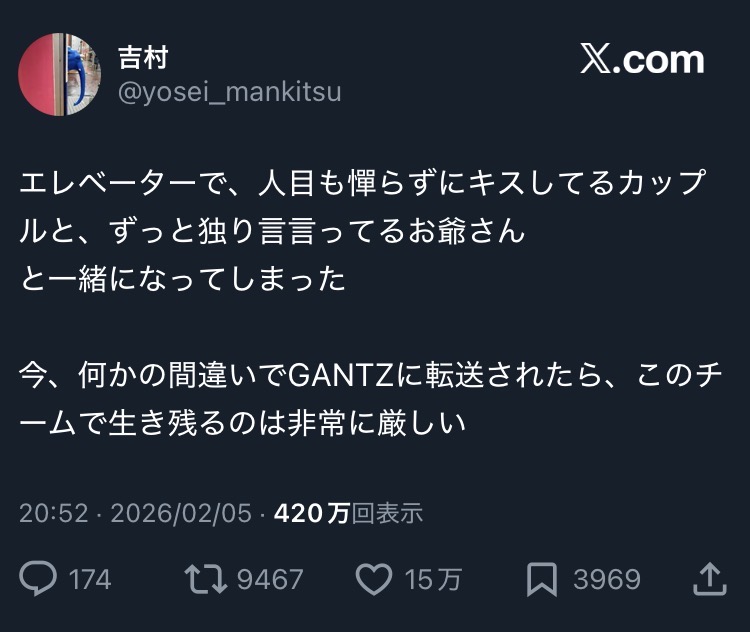| … | 226/02/07(土)18:41:06No.1399691228そうだねx5吉村が玄野になるしかない |