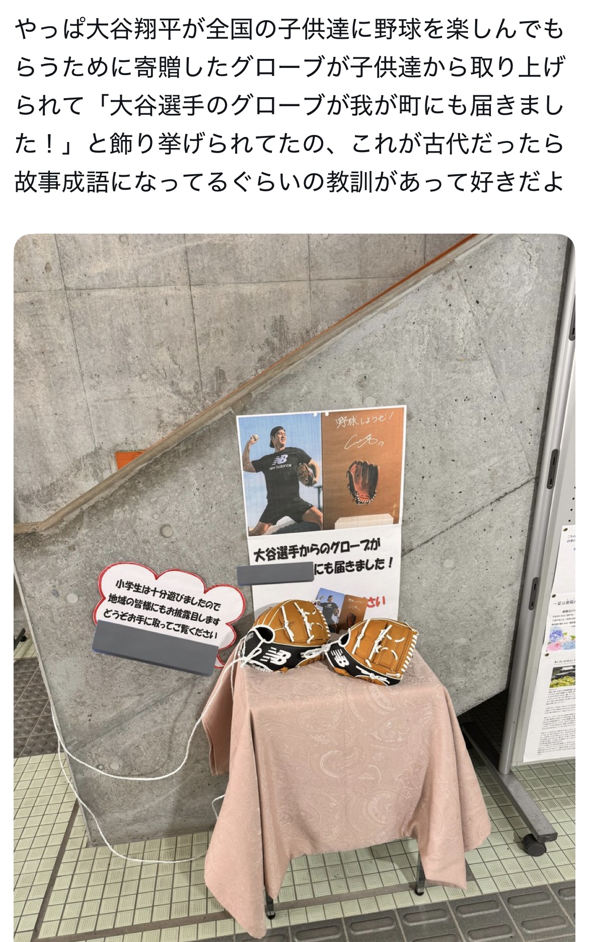 | … | 12226/02/07(土)22:16:16No.1399777889+>小学校にグローブ3個送られても別に部活があるわけじゃないし体育だとそもそも野球しないし昼休み遊ぶにしてもせいぜい子供はドッチボールかサッカーだろうしまあ展示が一番丸いか |