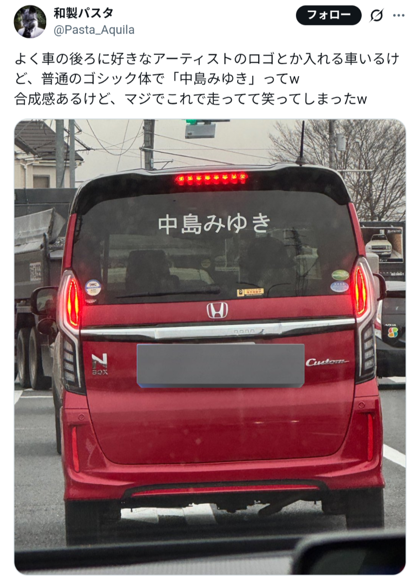 | … | 1926/02/08(日)00:36:48No.1399834319+中島みゆきはN-BOXで収まってていい人間じゃないだろ… |