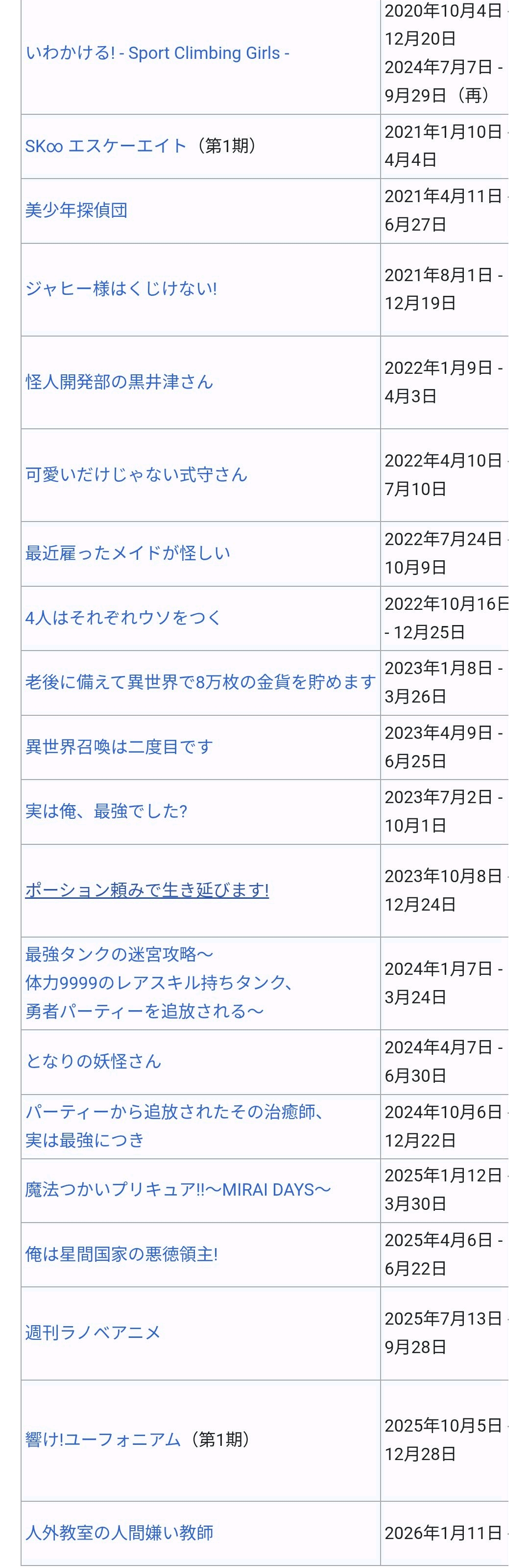 | … | 70326/02/08(日)02:58:21No.1399868499+>来期から日テレの金ローの後のアニメ枠が1時間に拡大されるからノイタミナの影がますます薄くなりそう |