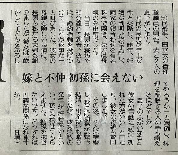 | … | 34626/02/08(日)10:37:08No.1399933640そうだねx3>彼女は私の発言がゆるせないといい、孫に合わせてもらえません。 |