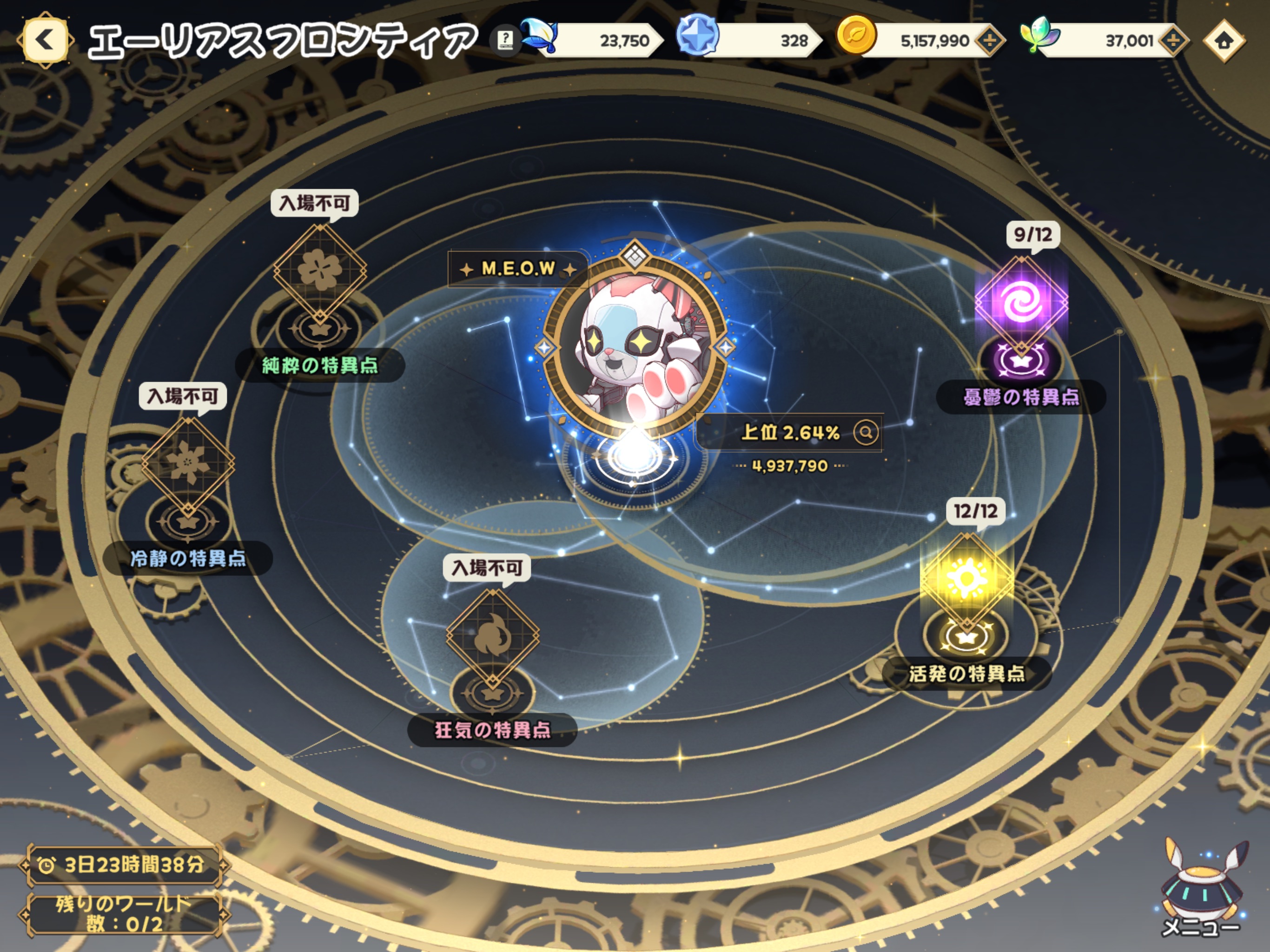 | … | 5326/02/08(日)10:25:46 ID:wpQEsAGcNo.1399930936+手を替え品を替えどうにか3%以内に食い込めたけど最もスコアの向上を感じたのはシオンのスキルレベルを777から12712に変えた時だったにゃん |