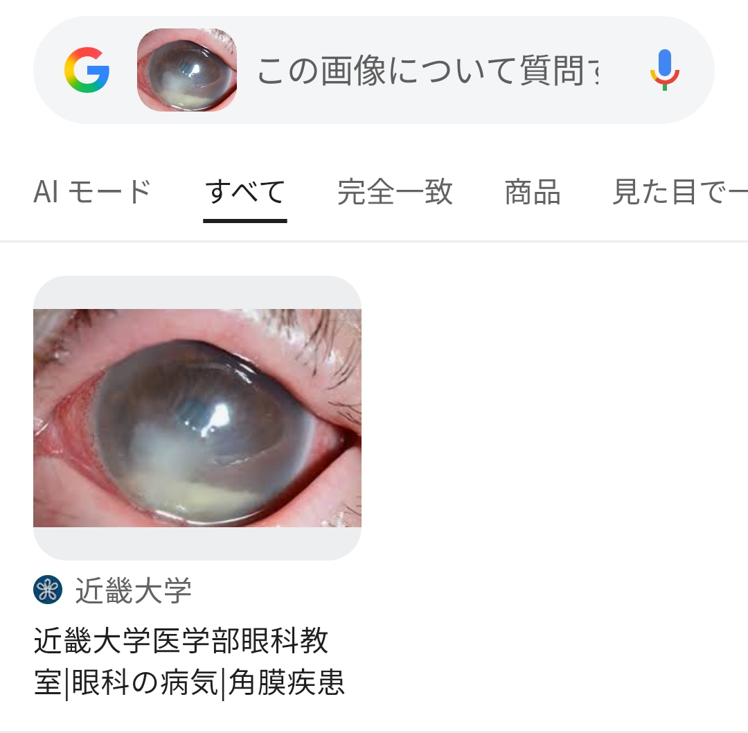 | … | 14526/02/08(日)14:06:56No.1399989069+スレ画は細菌性角膜炎の写真 |
