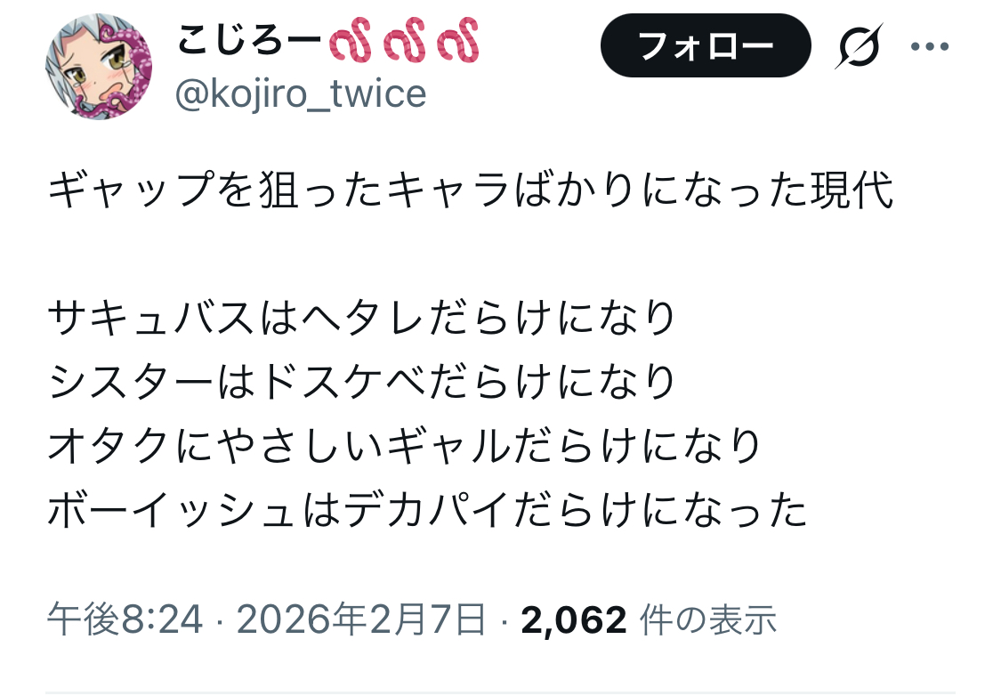 | … | 2826/02/08(日)15:02:51No.1400005674そうだねx20ボーイッシュはデカパイだらけになったしギャルはデカパイだらけになったし清楚系はデカパイだらけになった |