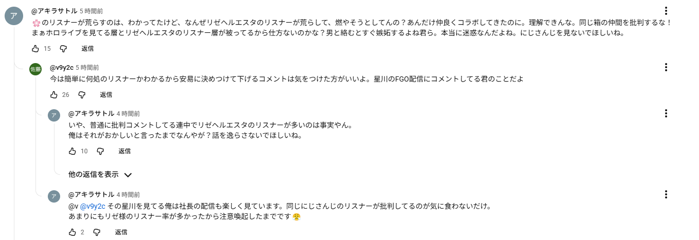 | … | 5326/02/08(日)20:41:17No.1400120680+>>さくらみこのアンチだったアカウントが一斉に加賀美擁護してんの晒されまくってて面白い |