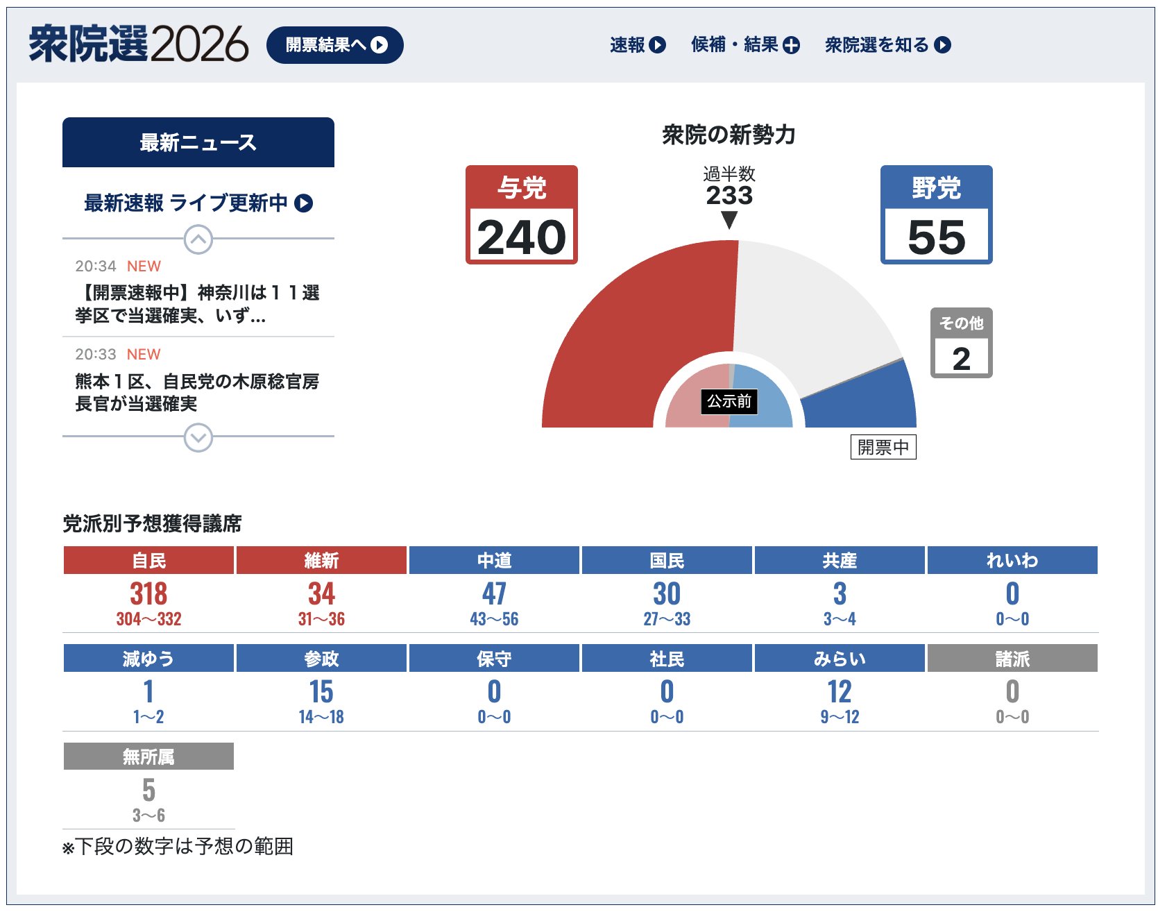 | … | 2826/02/08(日)20:38:51No.1400119586+>日経の速報見てても与党だけどんどん増えてくのちょっと面白い |
