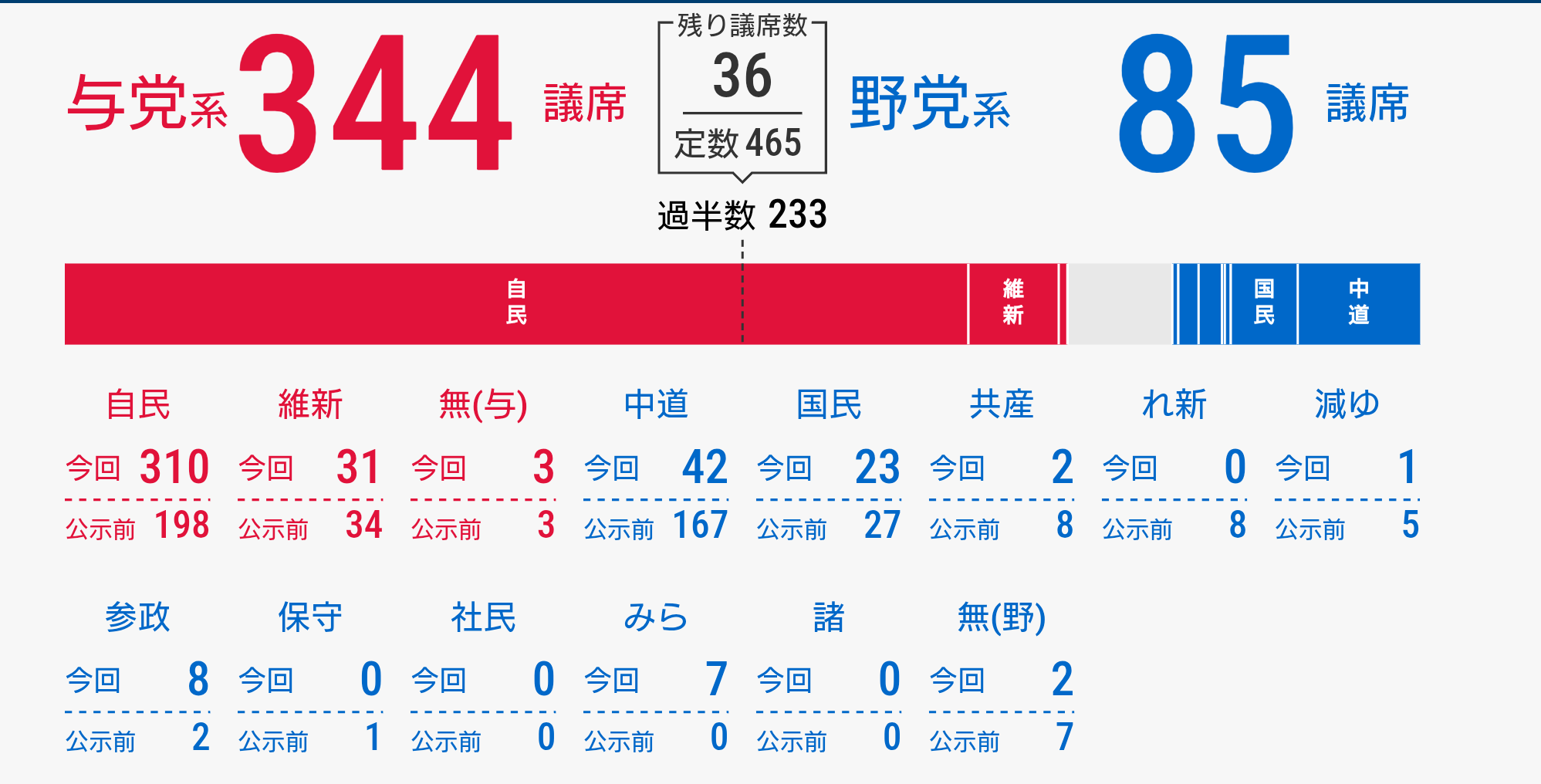 | … | 38326/02/09(月)02:09:20No.1400231694+過半数は取れると思ったけど単独で315議席はマジでやべー |