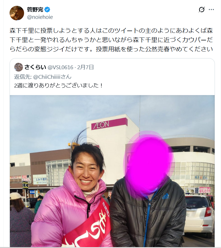 | … | 2826/02/09(月)17:55:20No.1400366378+有権者何人いると思ってるんだ?全員に売春してるってこと? |