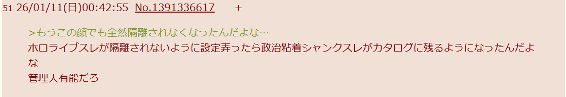 | … | 6226/02/09(月)20:50:21No.1400424933+>シャンカーがまた政治スレ潰してる… |