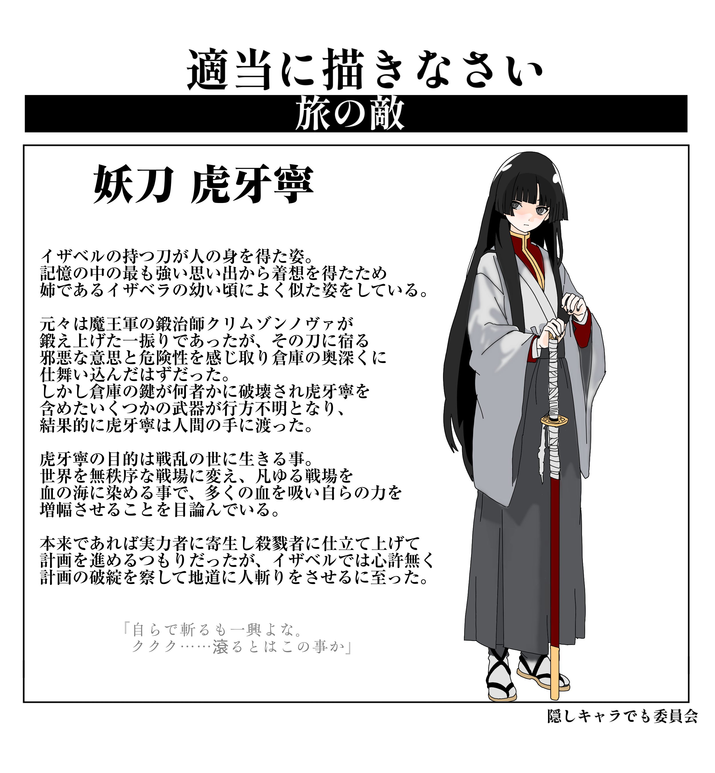 刀の擬人化らしきものを描きましたこのスレは古いので、もうすぐ消えます。