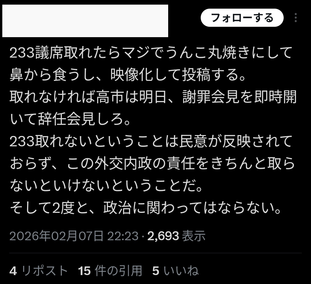 | … | 1026/02/09(月)22:18:10No.1400458569そうだねx1自民党とは言ってないから |