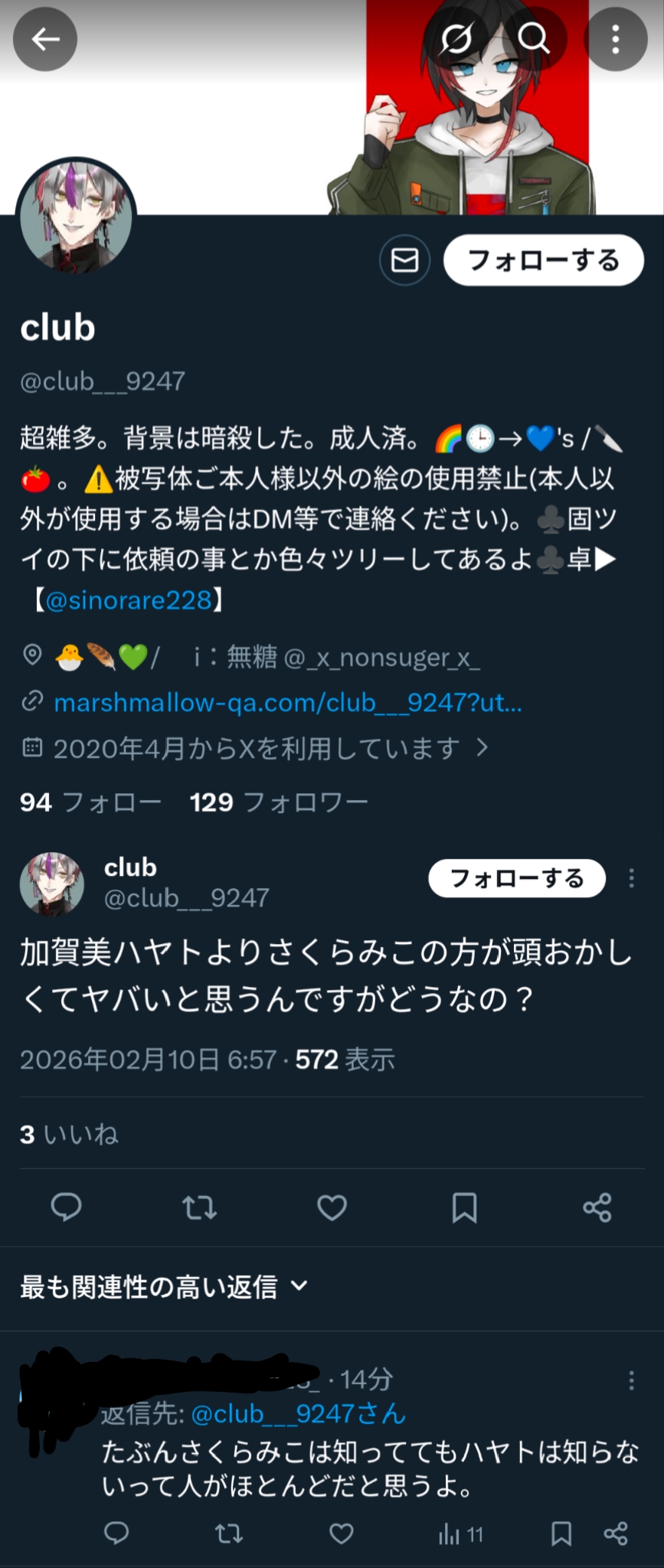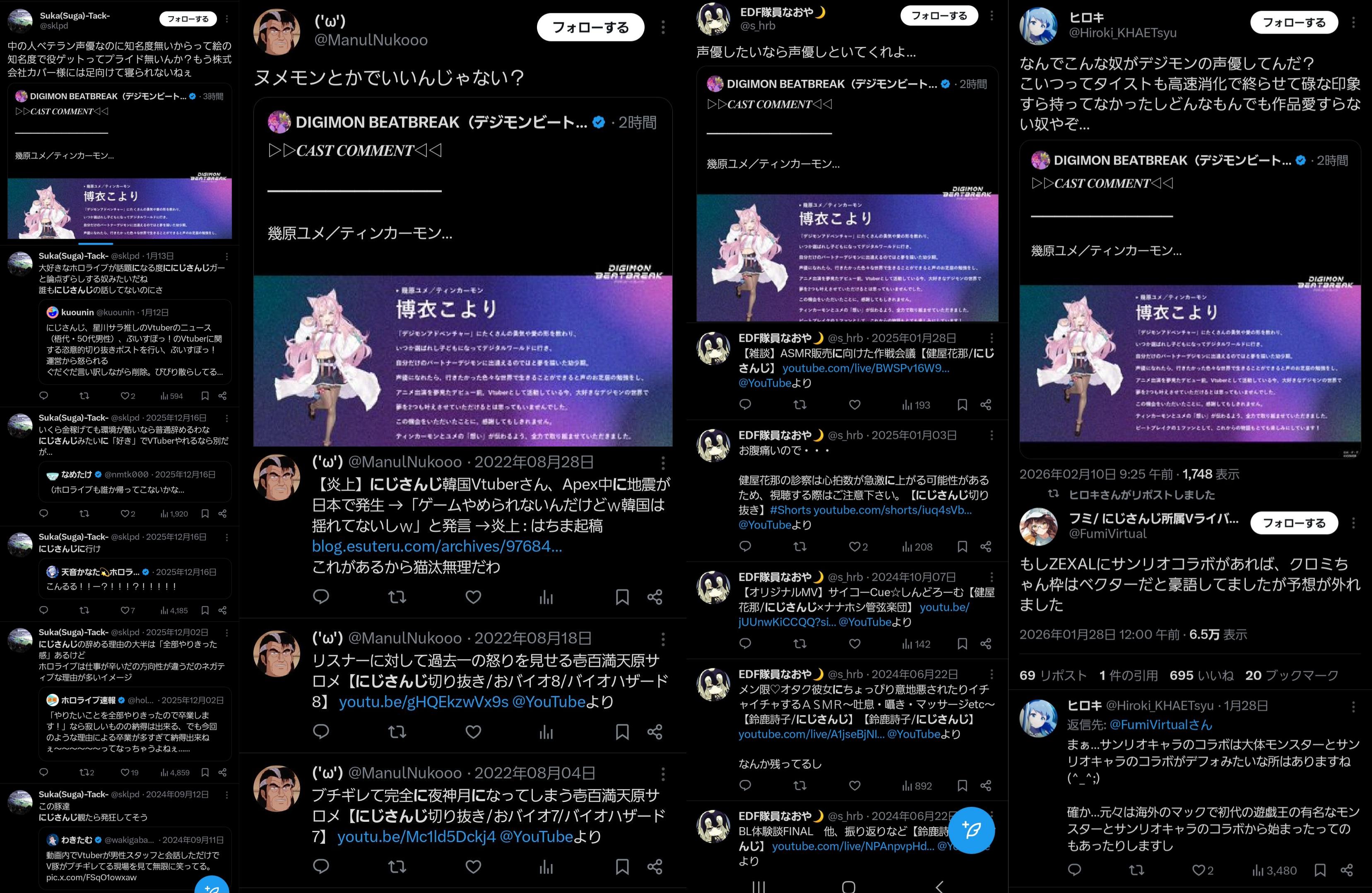 | … | 6126/02/10(火)17:30:48No.1400654372+>荒らしとかアンチじゃなくて割とヤクザと同類の集団なのでは… |