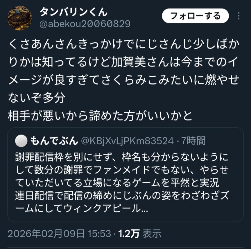 | … | 1026/02/10(火)17:18:29 ID:/kMJovboNo.1400651730+荒らしとかアンチじゃなくて割とヤクザと同類の集団なのでは… |
