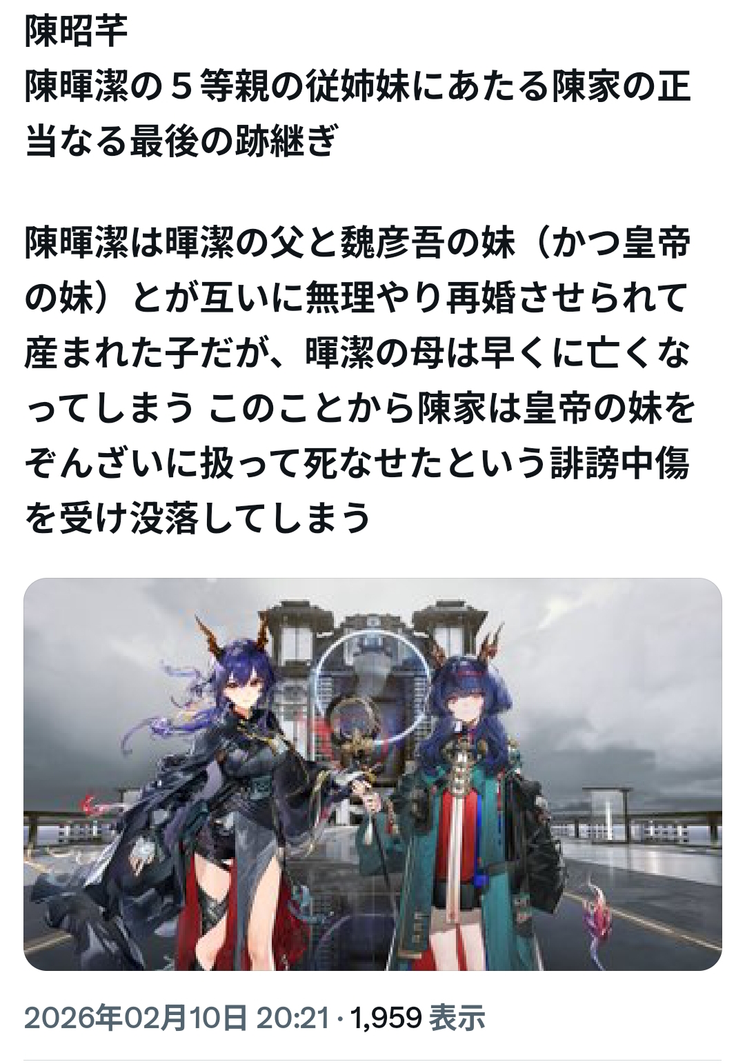 | … | 25126/02/10(火)22:21:49 ID:VORcxCQ.No.1400759607+見た目はエリザベート・バートリーの亜種なのにいい子だよねイヴォンヌ |