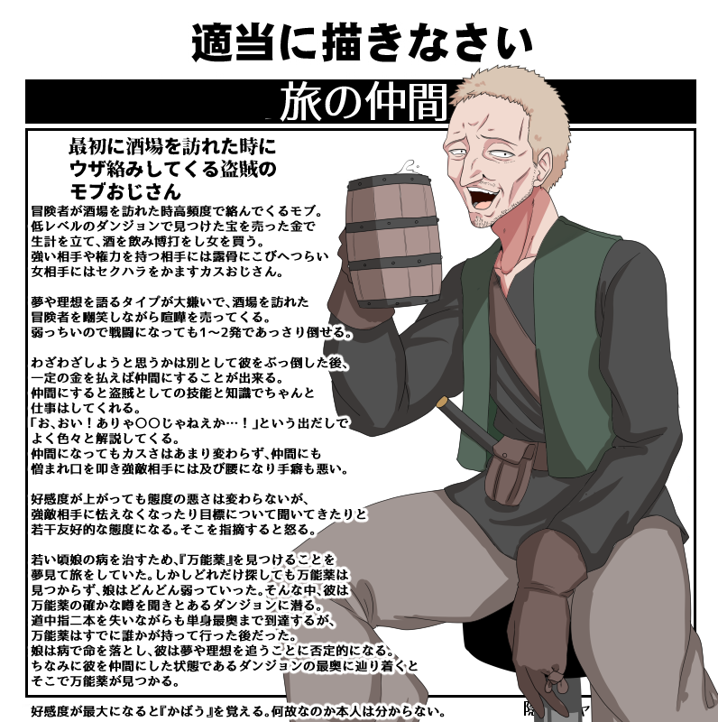 旅の酒場を訪れた時にウザ絡みしてくるイヤなモブおじさん描きました