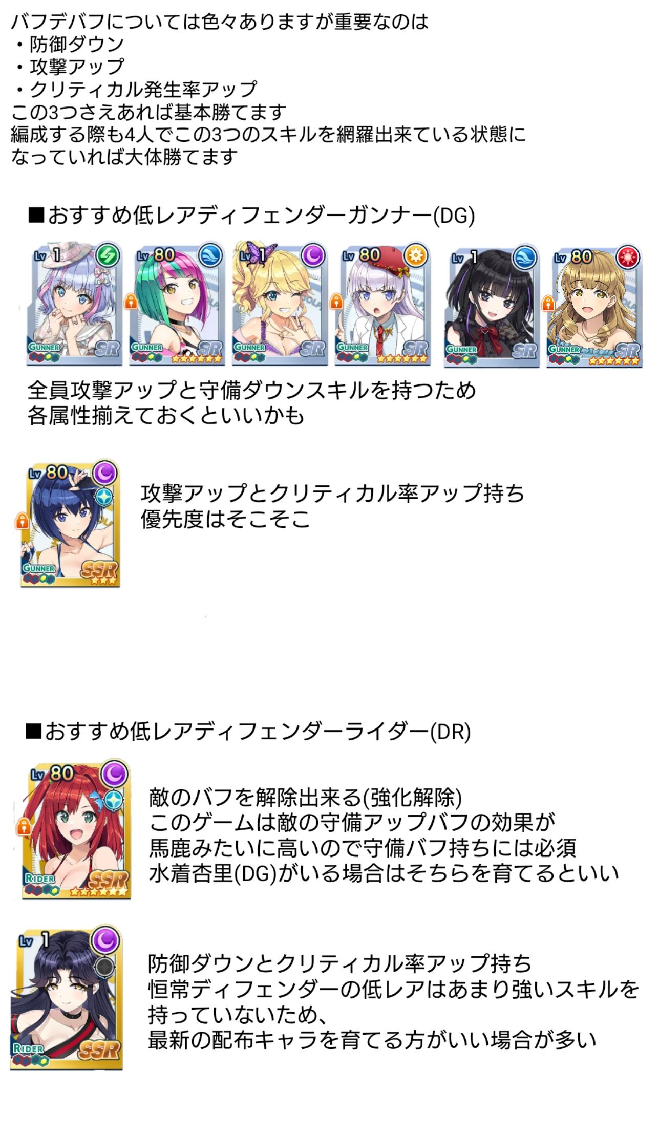 | … | 7526/02/11(水)12:38:06No.1400898515そうだねx1>最初は娘の回復助かる!ターン回復のカード助かる!みたいにやってたけど最近はディフェンダーにも攻撃アップのカードかチャージのカードつけてライフで受けて死ぬ前に殺るみたいな戦い方しているズリ |
