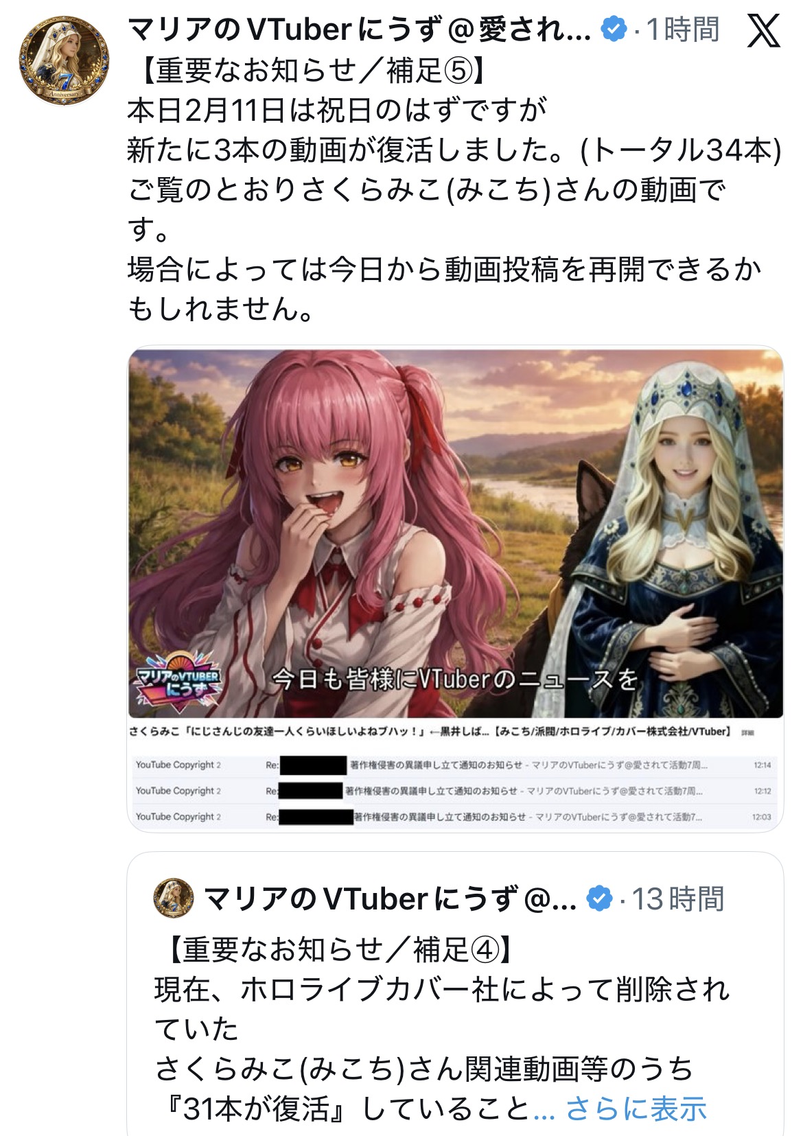 | … | 4826/02/11(水)13:47:43 ID:kvv0aGocNo.1400915819そうだねx8>カバー株式会社による米国での著作権侵害訴訟(「マリアのVTuberにうず」) |