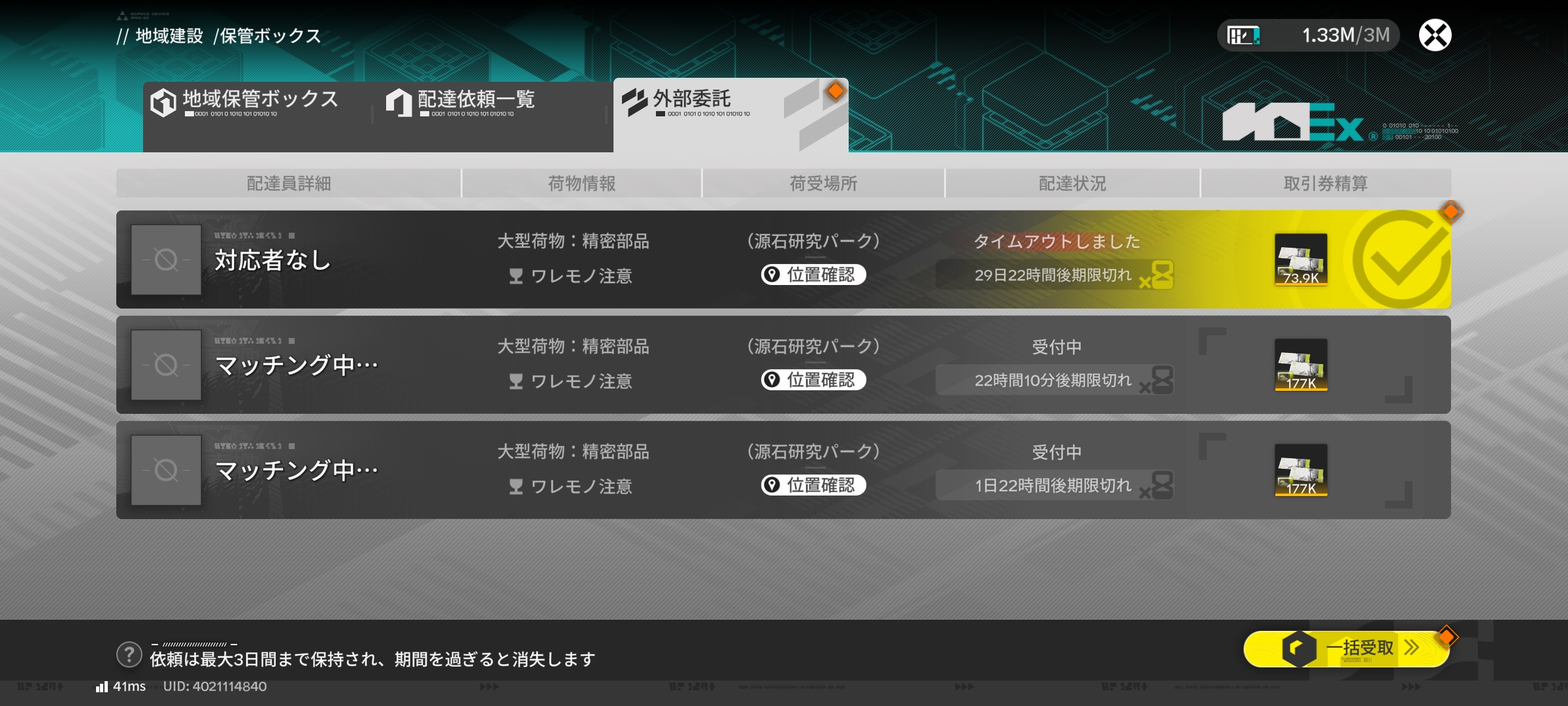 | … | 7926/02/11(水)14:46:29 ID:IgP.eowMNo.1400929935+理性は回復遅いしレア素材もたまにで良いかになるし配達もとりあえず武陵だけで最悪タイミーに投げれば良いから神経質にならなければ日課は楽 |