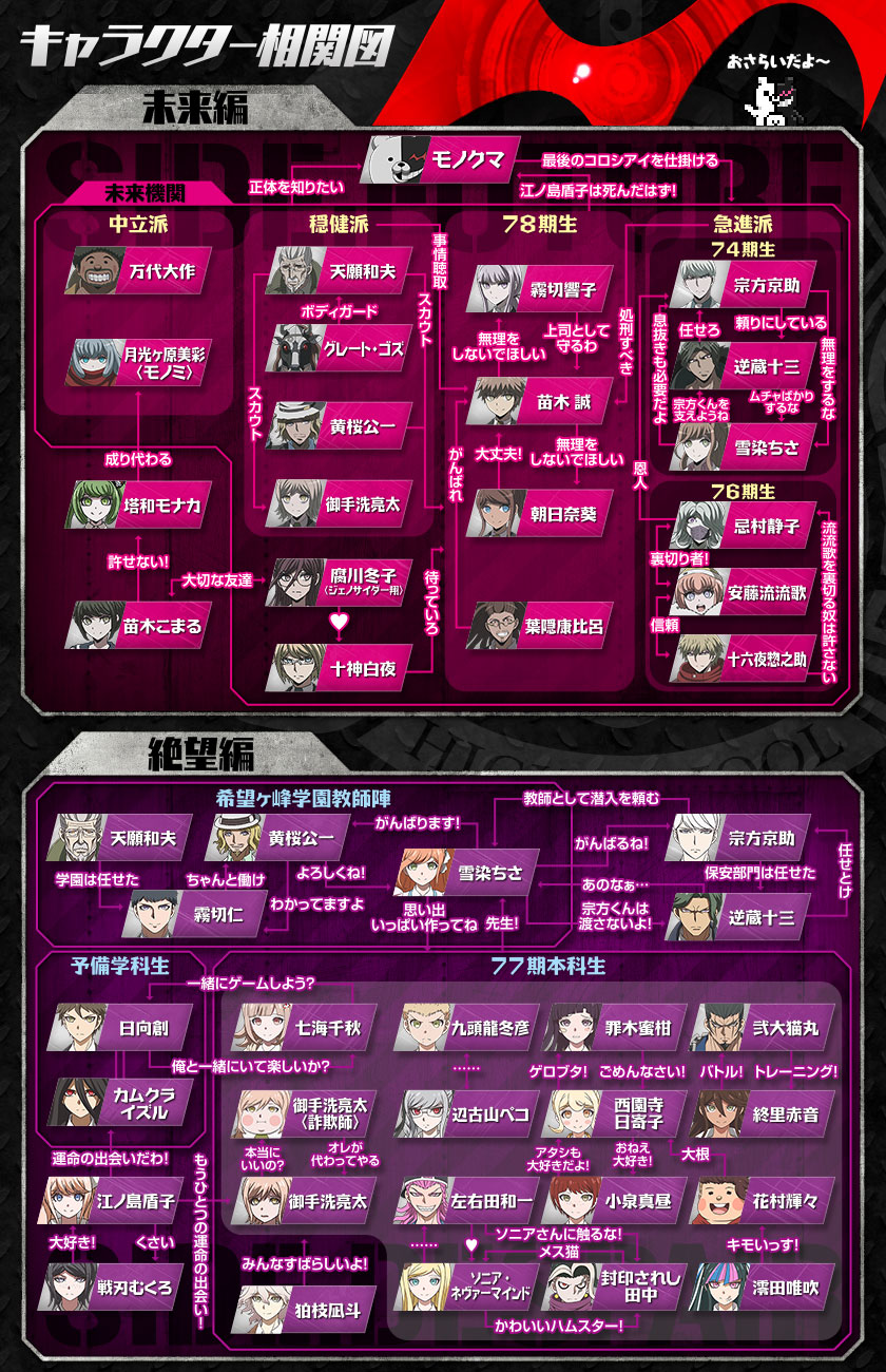 | … | 9526/02/11(水)19:21:14No.1401001783+十神腐川、左右田ソニアみたいに一方通行の関係なら両方生き残るかもしれないけど小泉西園寺みたいに両方べったりの関係なら両方生き残ることはなさそう |