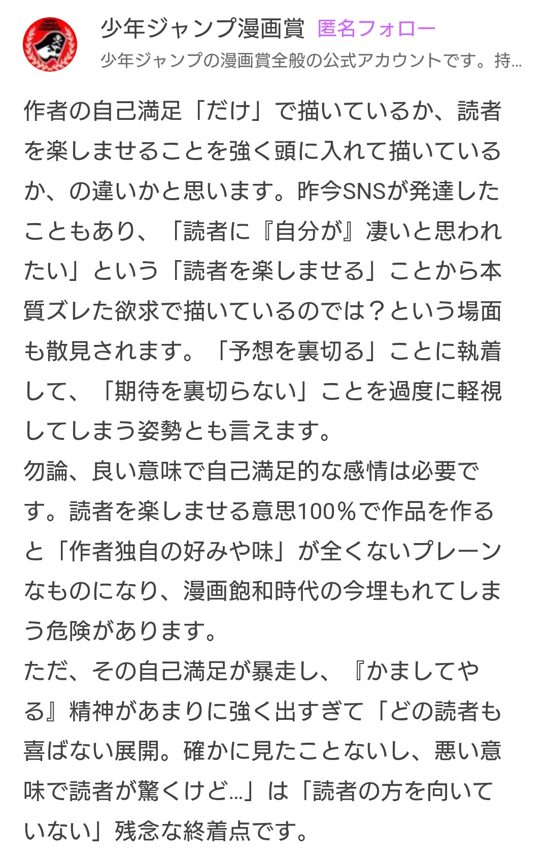 | … | 13426/02/12(木)00:18:15No.1401111090そうだねx2この「賞に送る読み切りどういうの書いたらいい?」って質問の回答も面白いな |