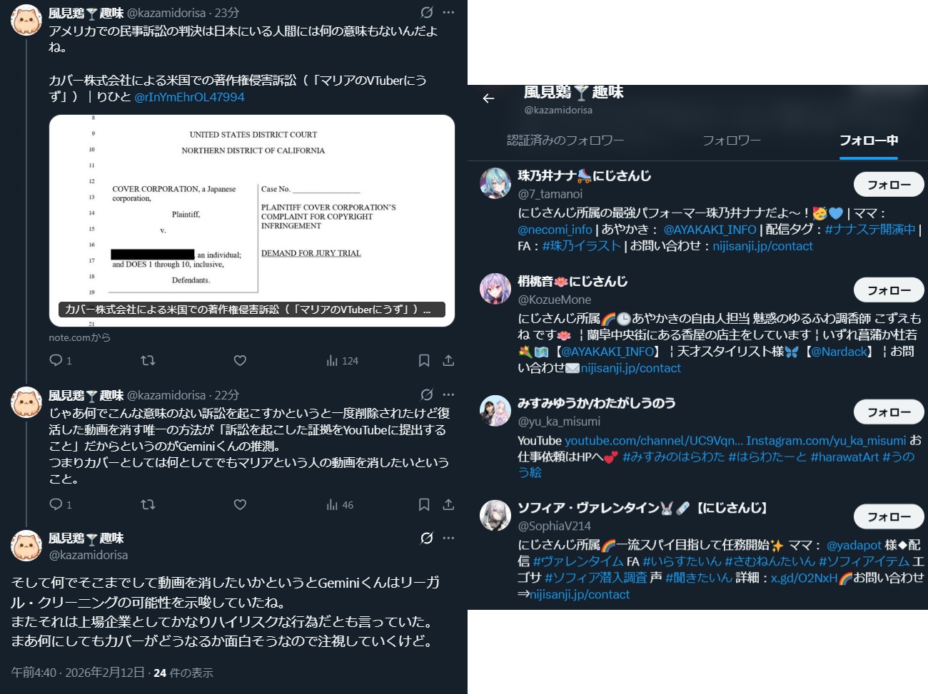 | … | 126/02/12(木)04:26:09No.1401146667そうだねx10にじさんじリスナー |