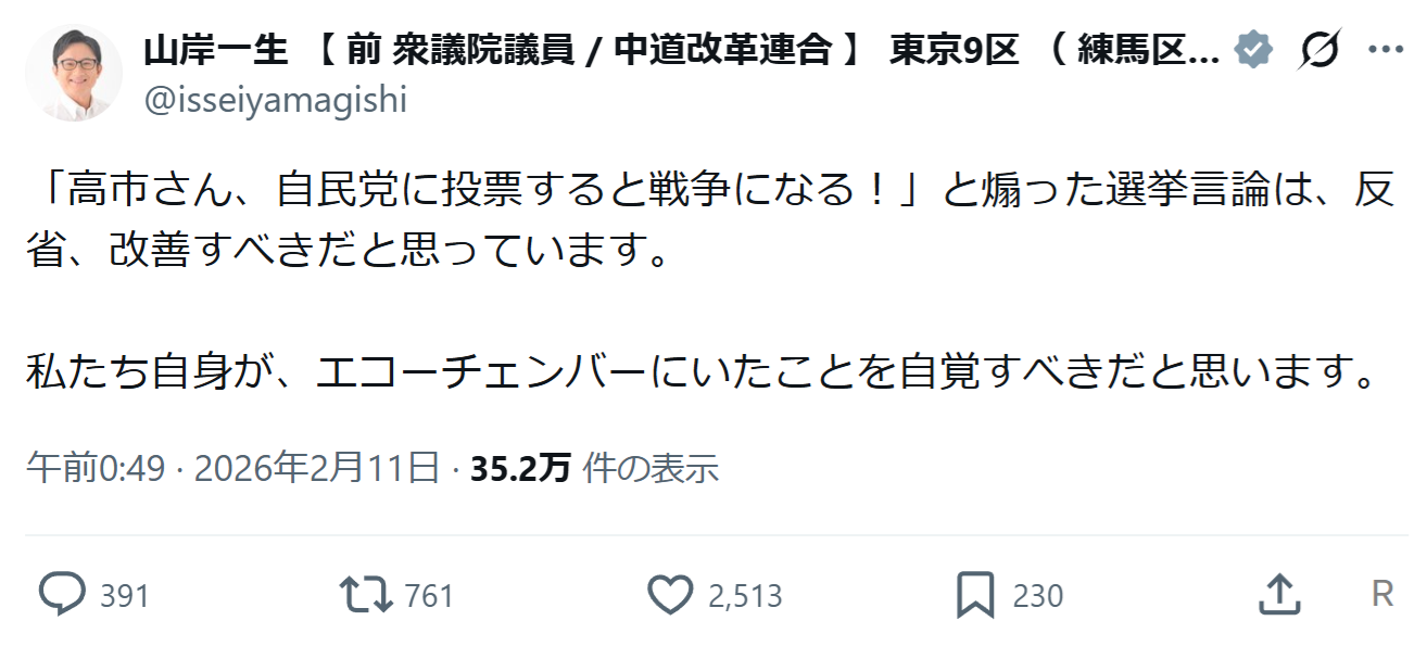 | … | 1526/02/12(木)08:04:11No.1401157829そうだねx19政治を語るのは別にいいんだが根拠のない決めつけやあからさまなヘイトや異なる意見を持った者を口汚く攻撃したりするのはやめてくれと思う |