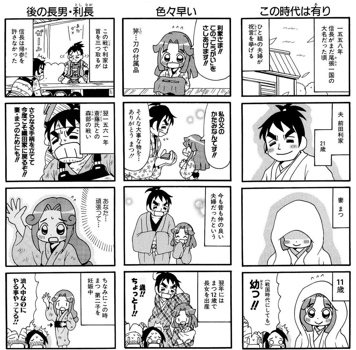| … | 6326/02/12(木)18:42:27No.1401302638+なお前田利家には本妻のまつの他に側室が5人ほどいたもよう |