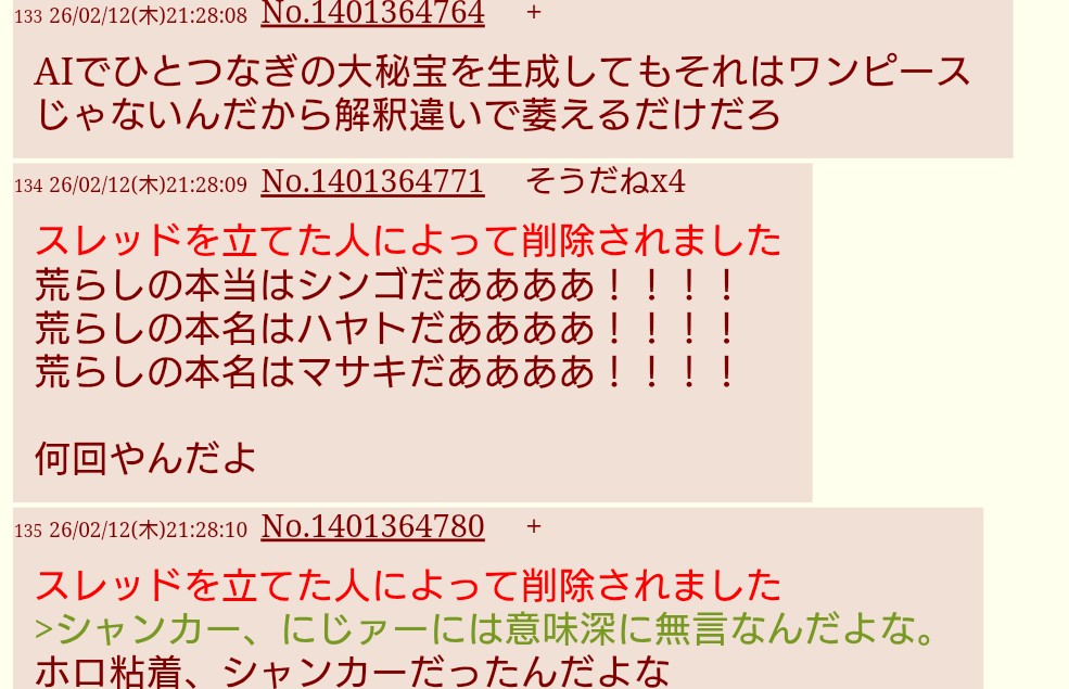| … | 5426/02/12(木)21:20:43No.1401361684そうだねx5荒らし度 |