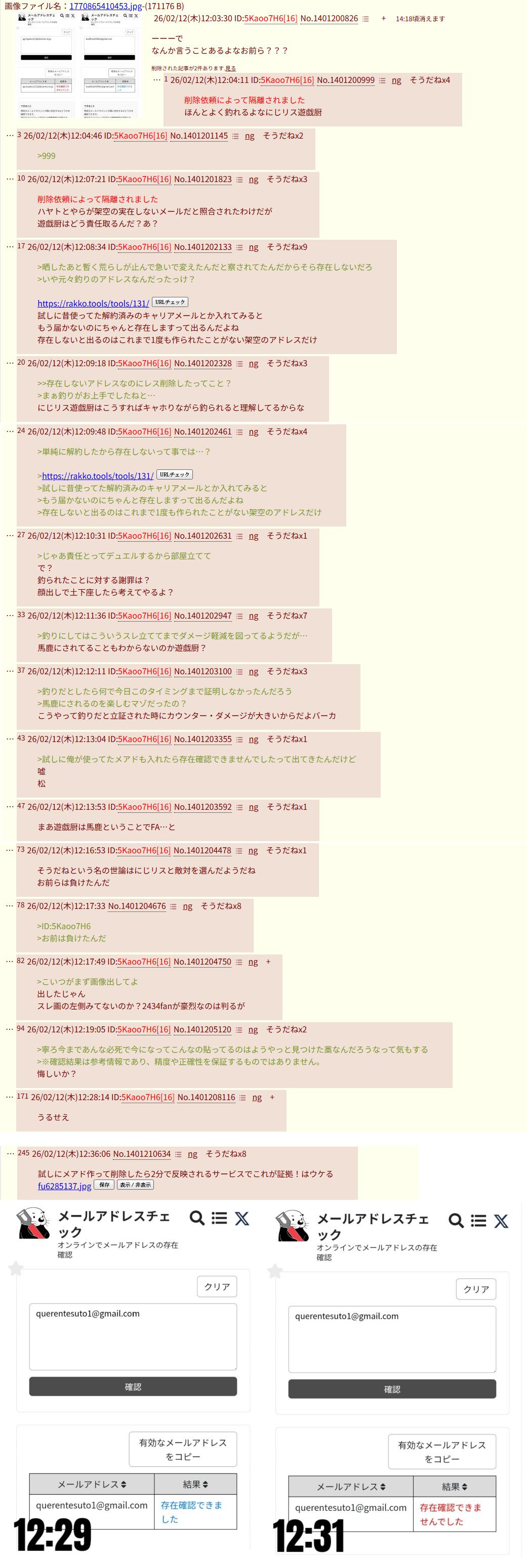 | … | 49826/02/12(木)23:12:47No.1401405259+>>わかりました…hayato1213は架空のアドレスだと認めます… |