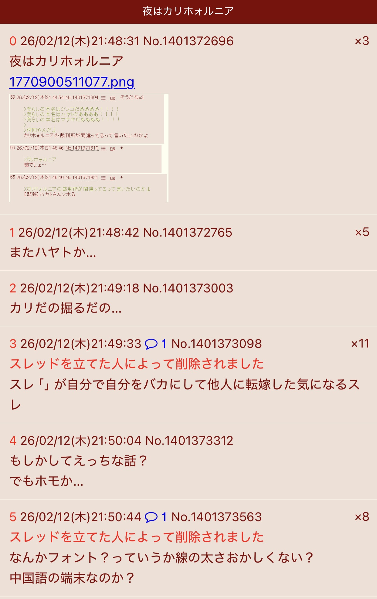 | … | 1026/02/12(木)22:02:38No.1401378079そうだねx8>さっきのフォントスレ爆破したの何で? |