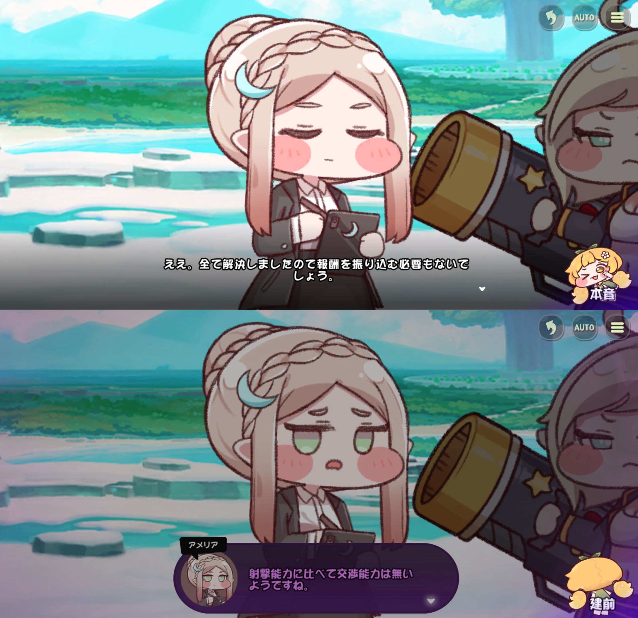| … | 66626/02/13(金)00:41:19 ID:kOBIXP2.No.1401432747そうだねx1>リッツvsシオンみたいなシリアスな場面でももちもちなスチルで何だか和んでしまうのがトリッカルらしくて良いにゃん |