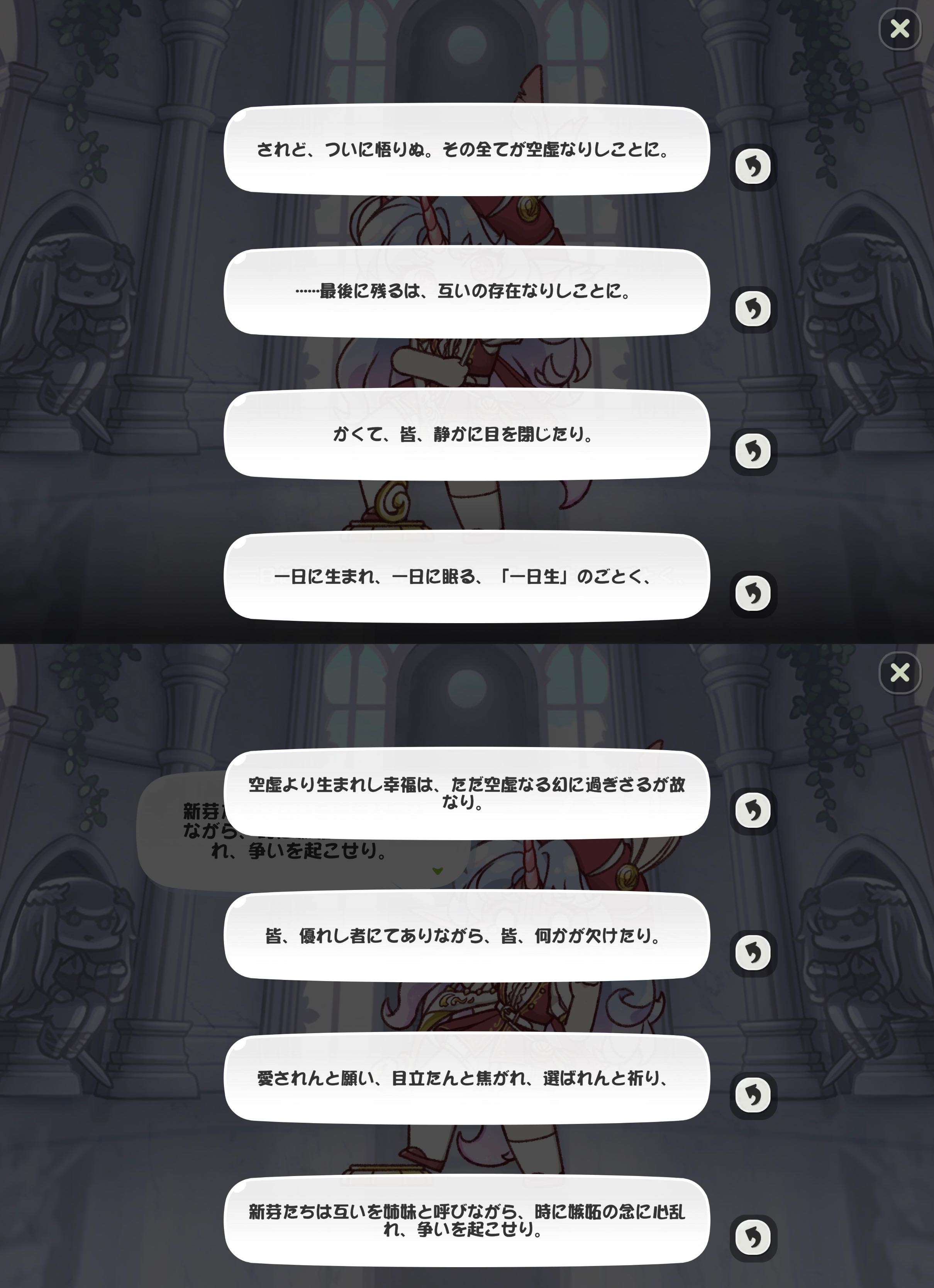 | … | 64826/02/13(金)00:35:42 ID:kOBIXP2.No.1401430968+>クロエは妖精の羽がないし今回のシオンは足元が透けてないにゃん |