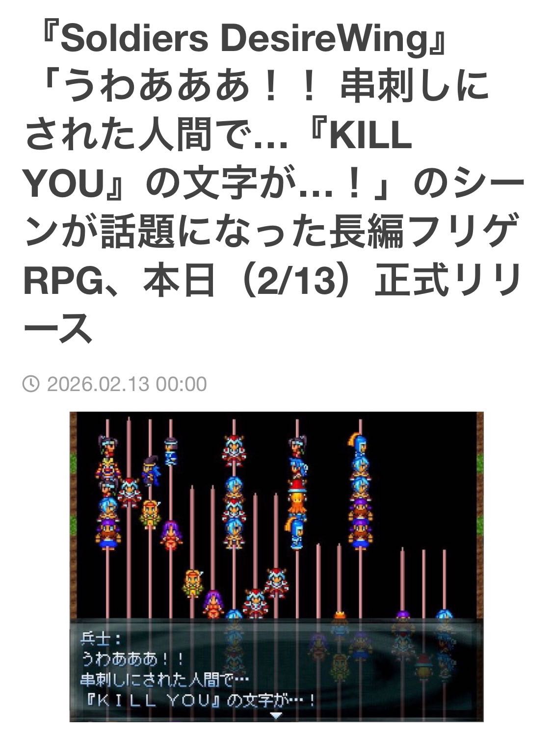 | … | 626/02/13(金)00:51:04No.1401435542そうだねx147うわあああ!串刺しにされた人間で…thank you for playingの文字が…! |