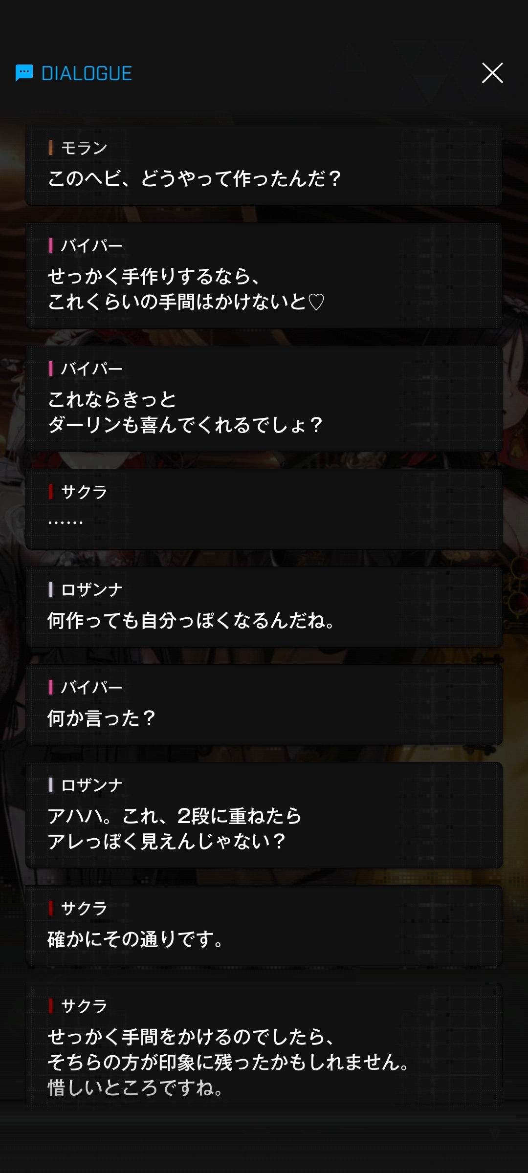 | … | 25826/02/13(金)09:33:44No.1401484463そうだねx1>クラストちゃん謹製チョコとか相当な高級品なんだろうけどプロの商品では愛がないってキレるバイパーの気持ちもちょっとわかる |