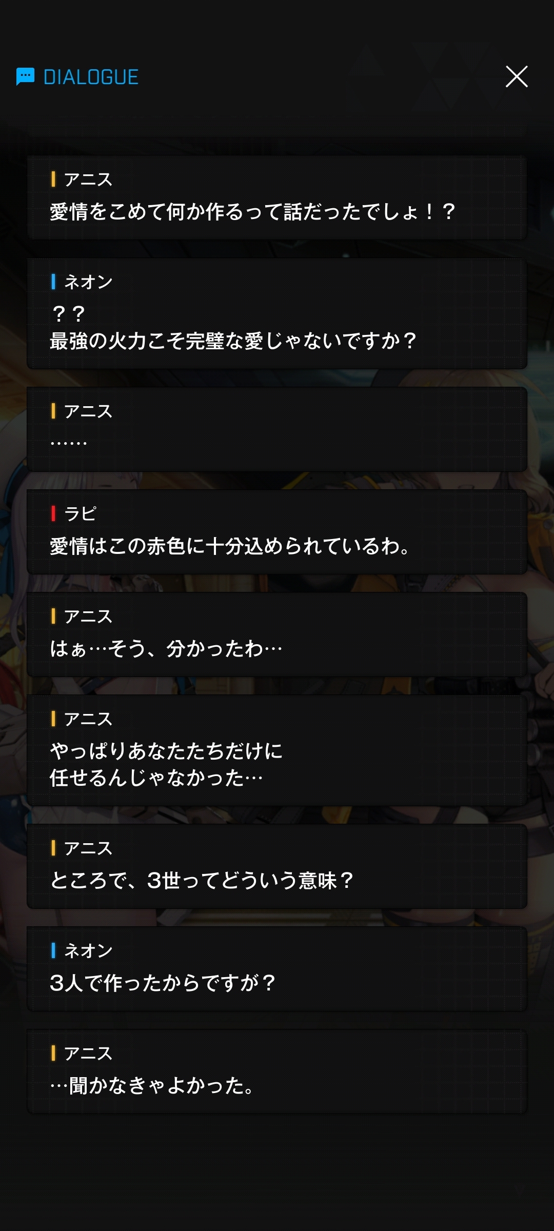| … | 6226/02/13(金)06:38:51No.1401462005+ちしかんは定期的に一部のニケの好感度落としてる印象だけど |